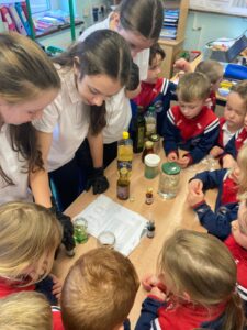 Classes from throughout the school were invited to visit the 5th and 6th Classroom, where they explored a variety of exciting experiments — from erupting volcanoes, elephant toothpaste, balloon rockets and colour-changing chemistry. The older students explained each activity, answered questions and encouraged younger pupils to try some of the experiments themselves.